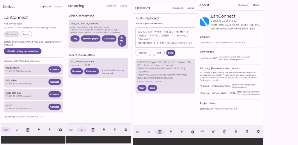 LanConnect is a fast and private app for sharing your clipboard and transferring files over your local network (Wi-Fi/LAN) — no cloud, no accounts.