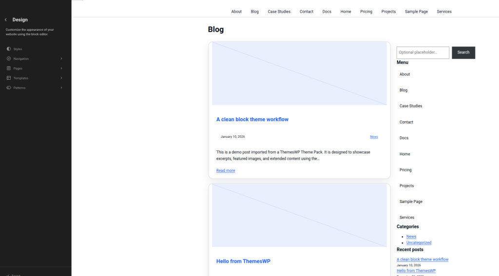 - Homepage & content display options – control front page, static home, posts, and pages behavior.